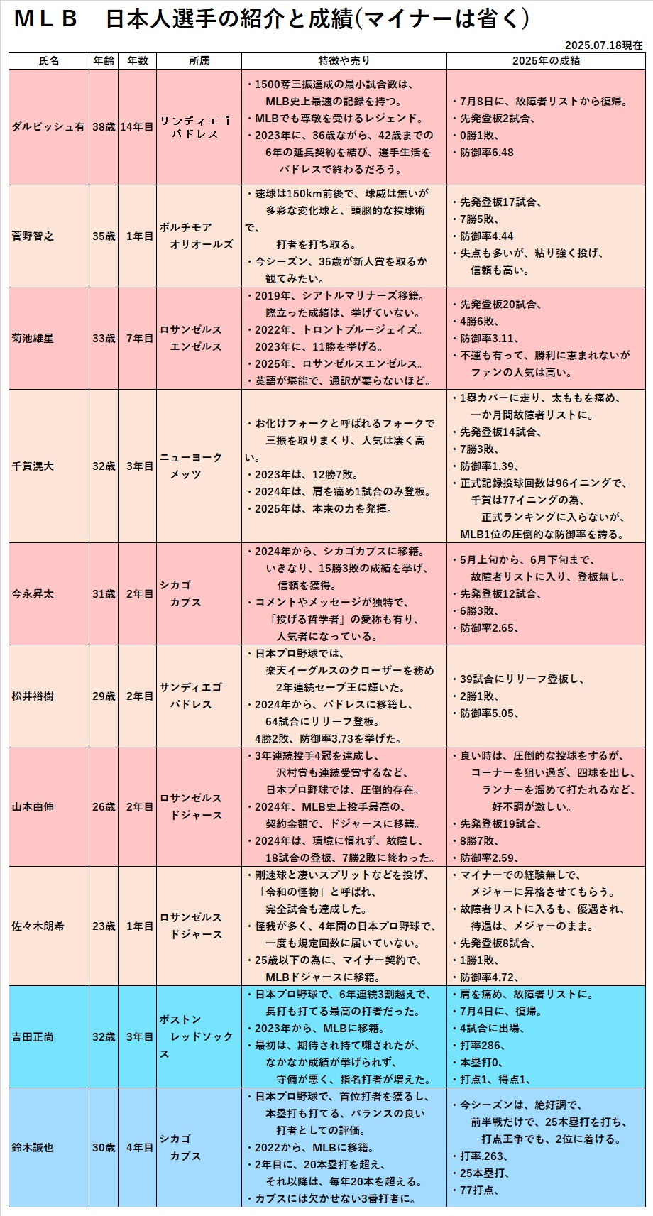 2025年7月の大谷翔平とMLBのページ