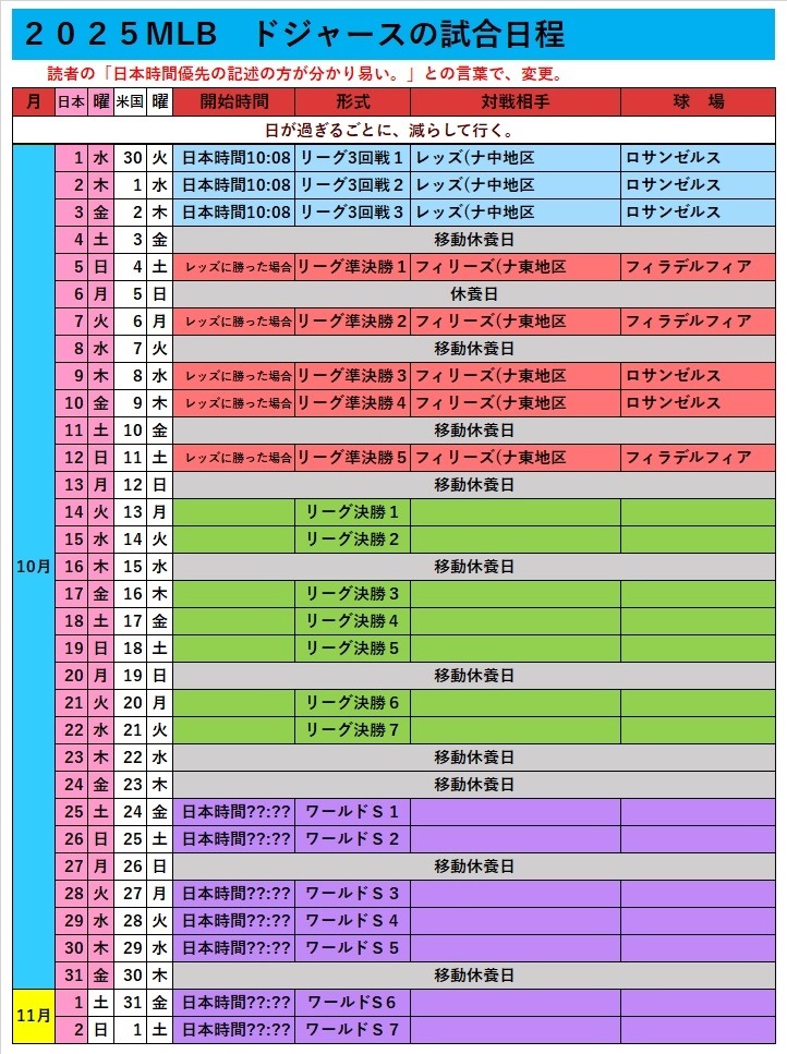 ドジャースの試合が、無い。