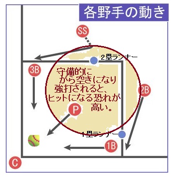 ・2番送りバントで、ランナー2塁、